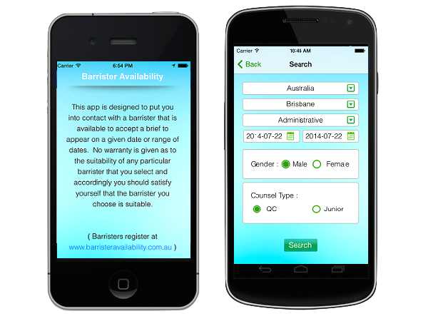 “Find a Barrister by selecting the City and other details relevant to your search - If you insert start and end dates, the search engine will identify barristers that are free on the dates you nominated"
